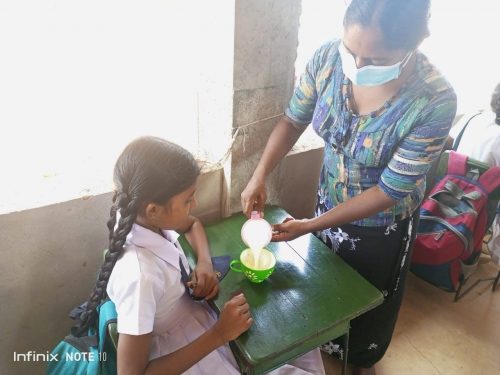 At one of the schools, they’re already struggling to provide a meal. So, we decided to give them something like milk porridge every day. The government’s rice meal program might end at any time, probably in January. If that happens, we’ll shift our liquid milk program to provide rice instead. For a year now, Samanthika akka has been looking after the school. It’s a true sign that the community is empowered, and that’s enough for us.